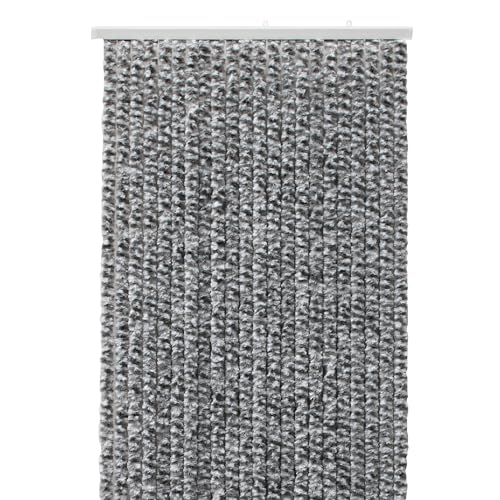 LEMODO Türvorhang WohnwagenFlauschvorhang 90x200 cm, Camping Vorhang als Fliegengitter für die Tür, Insektenvorhang hellgrau/weiß, optisch attraktiver Fliegenschutz