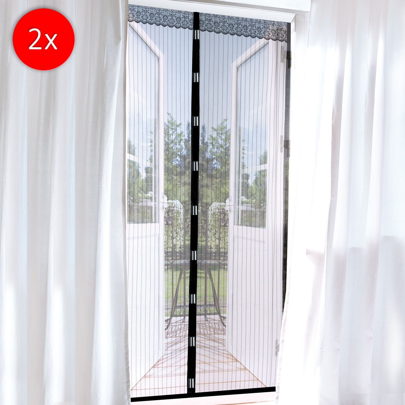 Das Produkt bietet einen effektiven Schutz vor Insekten, insbesondere Mücken und Fliegen, während gleichzeitig ein einfacher Zugang durch den Magnetverschluss ermöglicht wird. Die Installation erfolgt ohne Werkzeuge und ist somit unkompliziert. Das ästhetische Design mit einer oberen Bordüre sorgt dafür, dass das Netz nicht nur funktional ist, sondern auch gut aussieht.