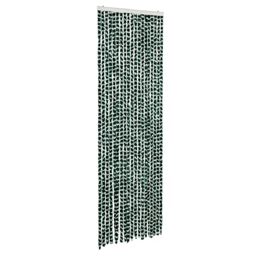 vidaXL FliegenvorhangInsektenschutz für Haus Mobilheim Wohnwagen, Türvorhang mit Haken, Fadenvorhang Insektenvorhang, Geräuscharm und sicher, Grün Weiß Chenille