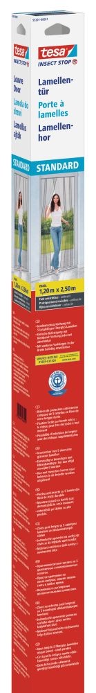 Das tesa Fliegengitter Lamellentür Standard 1 bietet Schutz vor lästigen Insekten und lässt dabei frische Luft ins Haus. Der Vorhang ist eine kosteneffektive Alternative zu einer Tür und ermöglicht ein einfaches Betreten und Verlassen des Hauses, ohne dass man ständig die Tür öffnen oder schließen muss.