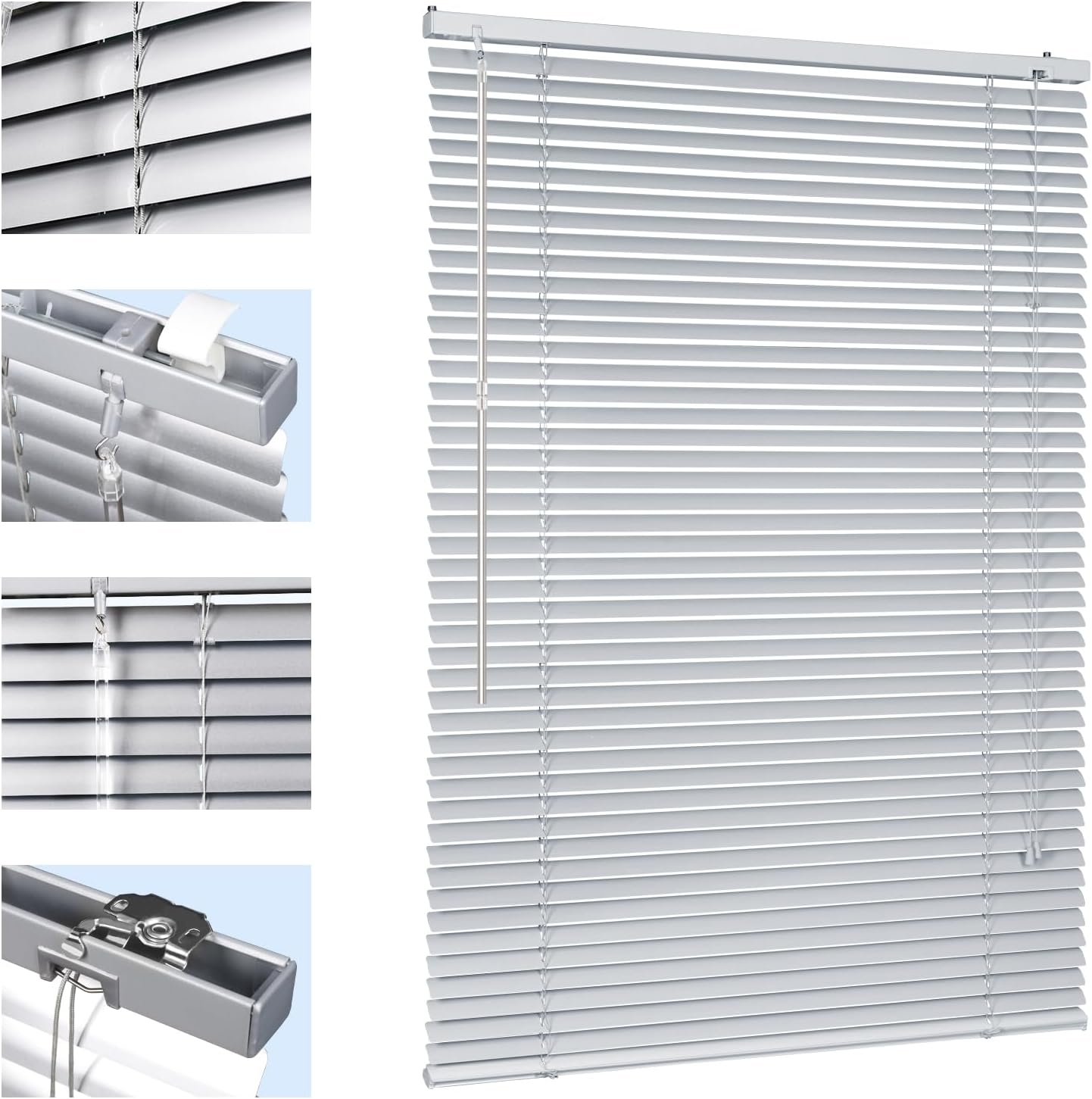 Stilvolle Sekey Klemmfix-Jalousie in Silber mit den Maßen 60x130 cm. Diese Aluminium-Jalousie überzeugt durch eine präzise Metall-Oberschiene (25x27 mm) und 81 mm breite Aluminium-Lamellen. Die Montage erfolgt einfach und ohne Bohren dank des Klemmfix-Systems. Die Lamellen ermöglichen eine vielseitige Lichtregulierung und bieten optimalen Blickschutz. Zudem kann die Jalousie flexibel in der Länge verstellt werden und ist ideal für verschiedene Räume wie Büro, Wohn-, Arbeits- oder Badezimmer. **Highlights** Einfache Klemmfix-Montage ohne Bohren Präzise Metall-Oberschiene für Stabilität Vielseitige Lichtregulierung durch Wendestab Flexibel anpassbare Länge mit Schnurzug Geeignet für verschiedene Räume **Produkteigenschaften** Maße: 60x130 cm Material: Aluminium Oberschiene: 25x27 mm Lamellenbreite: 81 mm