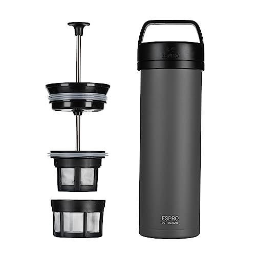 Die ESPRO Reise French Press Ultralight ist eine tragbare und gut isolierte Lösung für die Zubereitung von Kaffee und Tee. Sie bietet eine robuste Bauweise und ein selbstenthaltendes, auslaufsicheres System, das es ermöglicht, die Kaffeereste nach dem Trinken zu entsorgen. Die doppelte Filtertechnologie sorgt für eine saubere Tasse, jedoch kann es gelegentlich zu Rückständen kommen. Die Isolierung hält Getränke lange heiß oder kalt, was sie ideal für unterwegs macht. Einige Nutzer berichten jedoch von einem bitteren Geschmack, wenn der Kaffee zu lange steht, und bemängeln die Reinigung.
