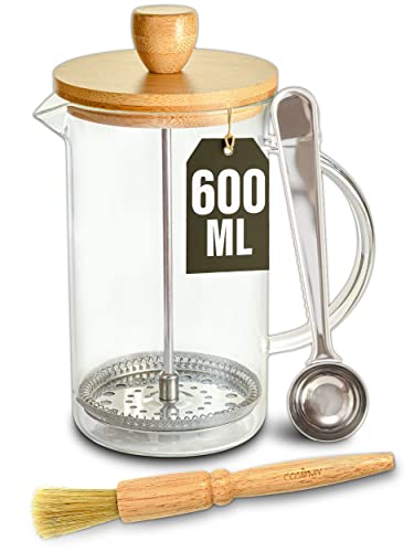 Die Cosumy French Press aus Glas wird für ihr schönes Design und die einfache Reinigung gelobt. Allerdings gibt es wiederholt Berichte über die mangelnde Stabilität des Griffs, der oft bricht, sowie über eine unzureichende Filterleistung, die dazu führt, dass Kaffeesatz in der Tasse verbleibt. Die allgemeine Qualität wird als nicht ausreichend für den Preis empfunden.