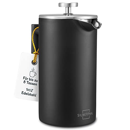 Die SILBERTHAL French Press Thermo 1 Liter ist ein praktischer Kaffeebereiter aus Edelstahl, der dank seiner doppelwandigen Isolierung den frisch gebrühten Kaffee lange warm hält. Mit diesem Produkt können Sie auch unterwegs, wie beim Camping oder Picknick, stets aromatischen und geschmacksintensiven Kaffee genießen.