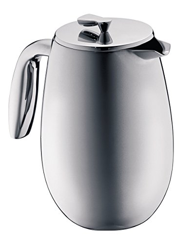 Der Bodum Columbia Kaffeebereiter ist eine robuste und ansprechende French Press, die Kaffee länger warm hält als Glaskannen. Sie bietet eine tropffreie Ausgießfunktion und ist einfach zu reinigen. Das Design ist zeitlos und die Qualität der Materialien hoch. Allerdings hält sie den Kaffee nicht für mehrere Stunden heiß und die Kapazität könnte für einige Nutzer unzureichend sein.
