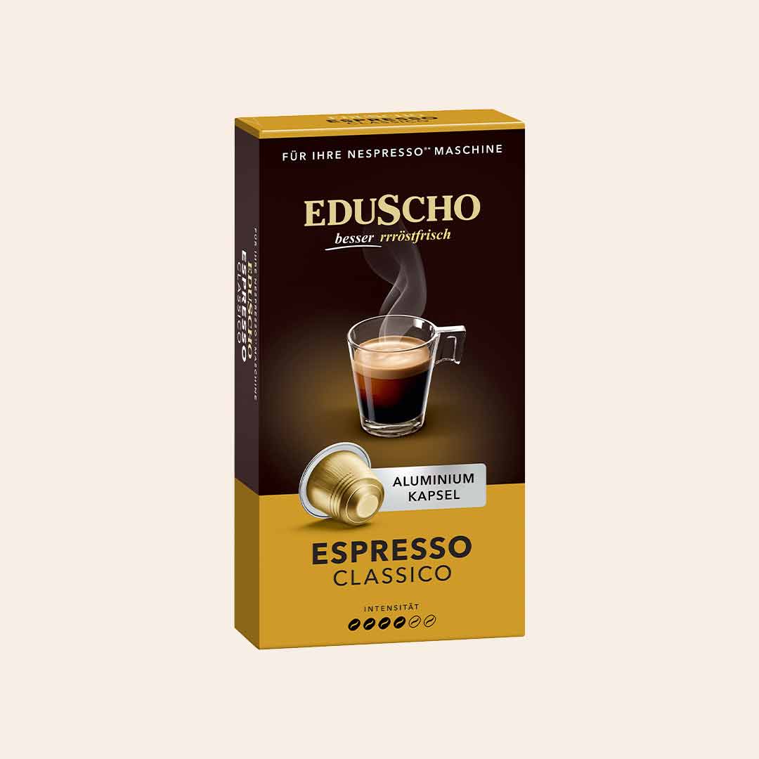 Laut der Testerinnen und Tester beeindruckt der Eduscho Espresso Classico durch Spitzenbewertungen in chemischen Analysen, Verkostung und Aufmachung. Die Umweltwirkungen wurden jedoch lediglich als befriedigend eingestuft. - zusammengefasst durch die Testsieger.de-Redaktion