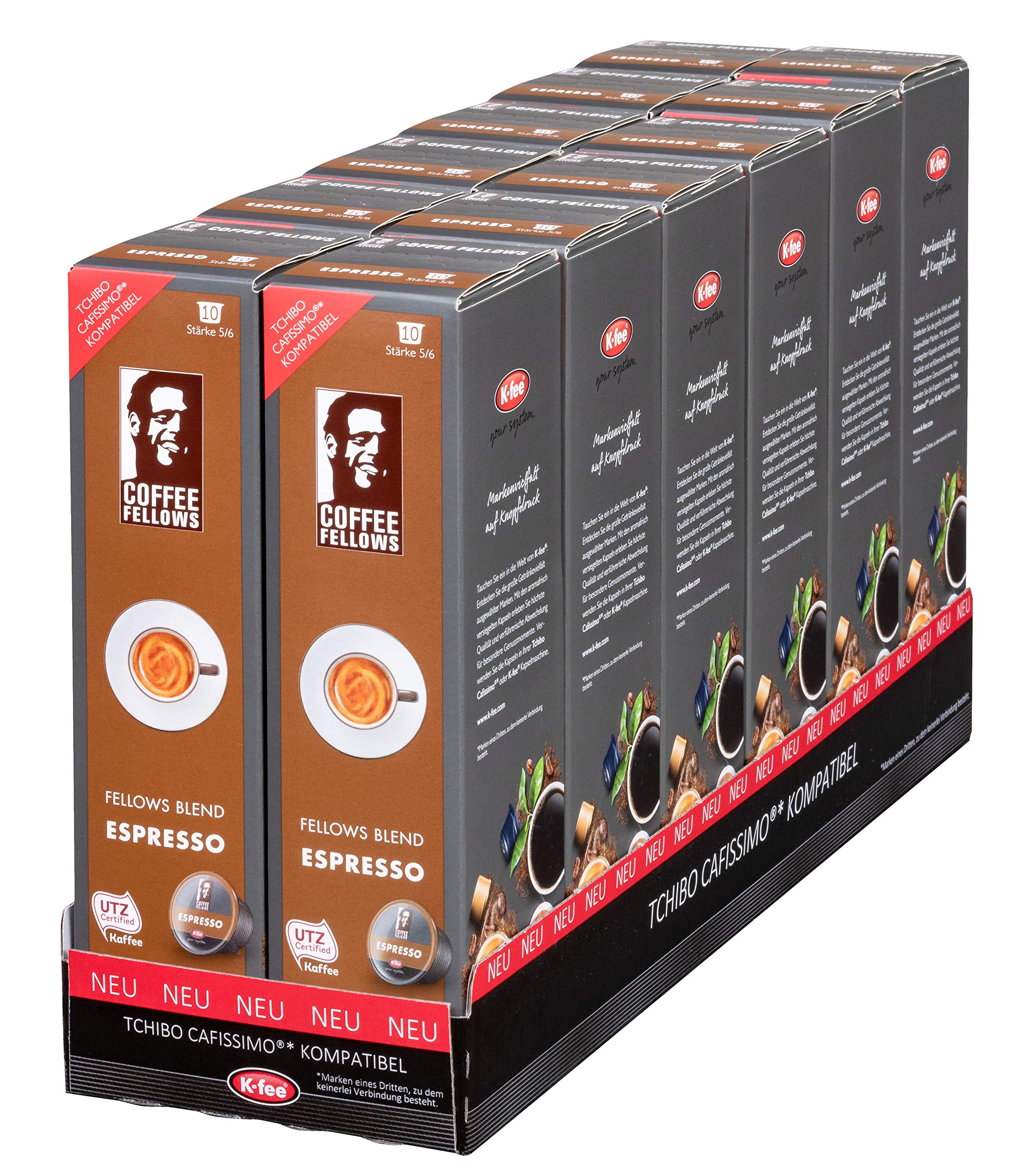 Die Coffee Fellows BLEND ESPRESSO Kaffeekapseln bieten eine praktische und köstliche Möglichkeit, einen kräftigen Espresso zu Hause zuzubereiten. Die Kapseln passen problemlos in verschiedene Maschinen wie Caffissimo und Dolce Gusto und überzeugen mit ihrem intensiven Geschmack, der oft mit teureren Marken verglichen wird. Dabei punkten sie auch durch ihr preisgünstiges Angebot im Vergleich zu anderen Kaffeekapseln.
