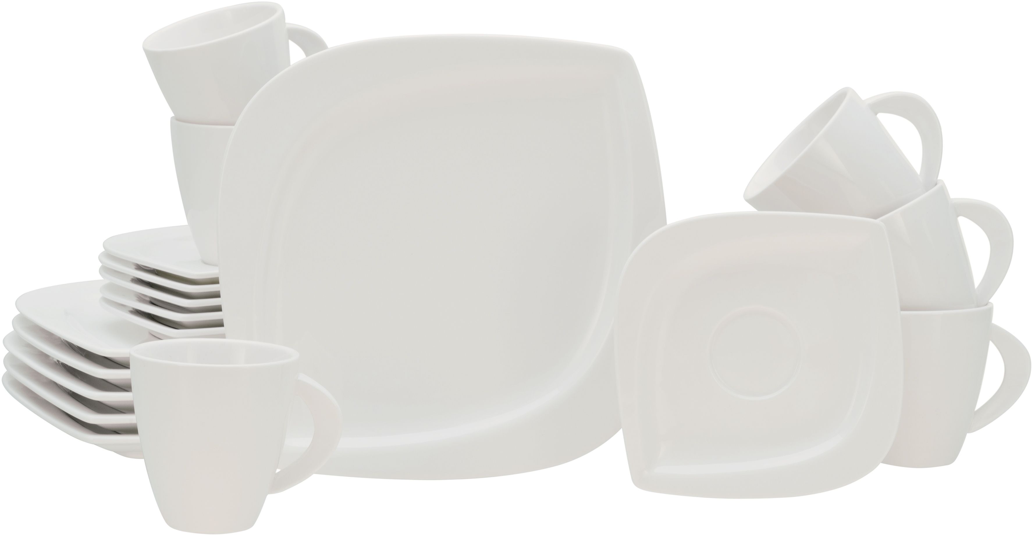 CreaTable Kaffeeservice Melbourne (18-tlg) für 6 Personen aus hochwertigem Porzellan. Das extravagante Design mit blattförmigem Charakter und eleganter cremeweißer Farbe macht es ideal für festliche Anlässe sowie den täglichen Gebrauch. Die Tassenhenkel folgen der Form der Teller und bieten eine harmonische Optik. Dieses langlebige Geschirr ist spülmaschinen- und mikrowellengeeignet und vereint Funktionalität mit stilvollem Design. **Highlights** - 18-teiliges Kaffeeservice für 6 Personen - Blattförmiger Charakter mit extra großer Essfläche - Elegantes cremeweißes Design - Spülmaschinen- und mikrowellengeeignet - In Deutschland konzipiert und in Premiumfabriken produziert **Produkteigenschaften** - 6 Dessertteller (Ø 22 cm) - 6 Obertassen (20 cl) - 6 Untertassen (Ø 15 cm) - Außergewöhnlich lang haltbar **Lieferumfang** - 6 Dessertteller - 6 Obertassen - 6 Untertassen