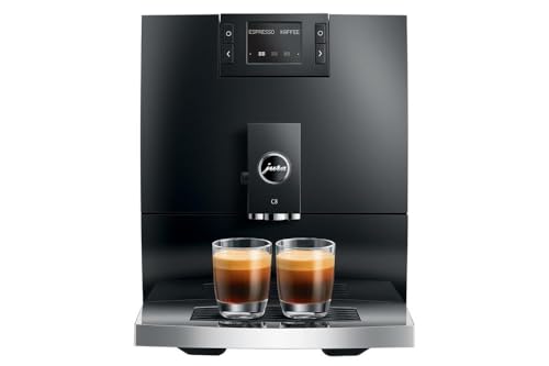 Der Jura C8 Piano Black (EA) Kaffeevollautomat bietet großen Genuss im kleinen Format. Die Premium-Economy-Klasse von JURA überzeugt mit leistungsstarkem Innenleben und Stilelementen der Premium-Klasse. Die Full-Size-Brüheinheit mit variabler Brühkammer ermöglicht eine Vielfalt an Kaffeearomen. Der Plus-Extraktionsprozess (P.E.P.®) sorgt für Espresso in Kaffeebar-Qualität. Die individuelle Einstellung von Mahlgrad, Wasser- und Milchmenge ermöglicht personalisierten Genuss. Die Doppeltassenfunktion bereitet zwei Tassen Espresso oder Kaffee gleichzeitig zu. Die Feinschaum-Technologie garantiert feinporigen Milchschaum für Latte macchiato und Cappuccino auf Knopfdruck. **Highlights** - Full-Size-Brüheinheit mit variabler Brühkammer: Vielfalt an Kaffeearomen - Plus-Extraktionsprozess (P.E.P.®): Espresso in Kaffeebar-Qualität - Individuelle Einstellung von Mahlgrad, Wasser- und Milchmenge: Persönlicher Geschmack - Doppeltassenfunktion: Zubereitung von zwei Tassen gleichzeitig - Feinschaum-Technologie: Perfekter Milchschaum für Latte macchiato und Cappuccino **Produkteigenschaften** - Farbe: Piano Black - Kompakte Größe - Full-Size-Brüheinheit mit variabler Brühkammer (Fassungsvermögen: 5 bis 16 Gramm) - Plus-Extraktionsprozess (P.E.P.®) für Espresso in Kaffeebar-Qualität - Individuelle Einstellung von Mahlgrad, Wasser- und Milchmenge - Doppeltassenfunktion für die Zubereitung von zwei Tassen gleichzeitig - Feinschaum-Technologie für perfekten Milchschaum