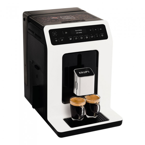 Der Krups Evidence EA 8901 Vollautomat präsentiert sich als ein leistungsstarkes Gerät, das die Zubereitung verschiedener Kaffeespezialitäten auf Knopfdruck ermöglicht. Mit einem eleganten Design in weiß-schwarz und der Fähigkeit, zwei Getränke gleichzeitig zuzubereiten, richtet sich dieser Kaffeevollautomat an Kaffeeliebhaber, die Wert auf Qualität und Vielfalt legen.