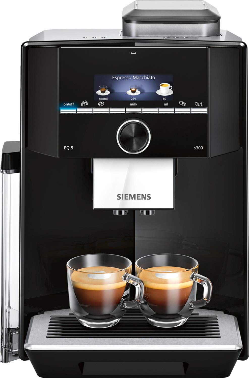 Der Siemens EQ.9 s300 präsentiert sich in einem schlichten schwarzen Design, das sich nahtlos in moderne Küchen und Büros einfügt. Das Gehäuse besteht aus einer Kombination von Edelstahl und Kunststoff, was sowohl Robustheit als auch ansprechendes Aussehen bietet. Die kompakte Größe von 47 x 31 x 39,2 cm und das Gewicht von 11,5 kg machen ihn zu einem praktischen Begleiter, der nicht viel Platz in Anspruch nimmt, aber dennoch auffällt.