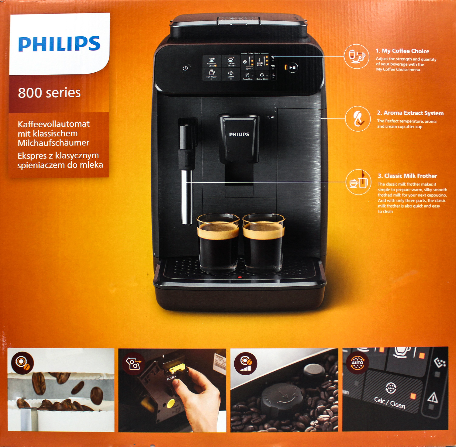 • Der Philips EP0820/00 Kaffeevollautomat in Schwarz ermöglicht die Zubereitung von frischem Kaffee aus gemahlenen Bohnen
