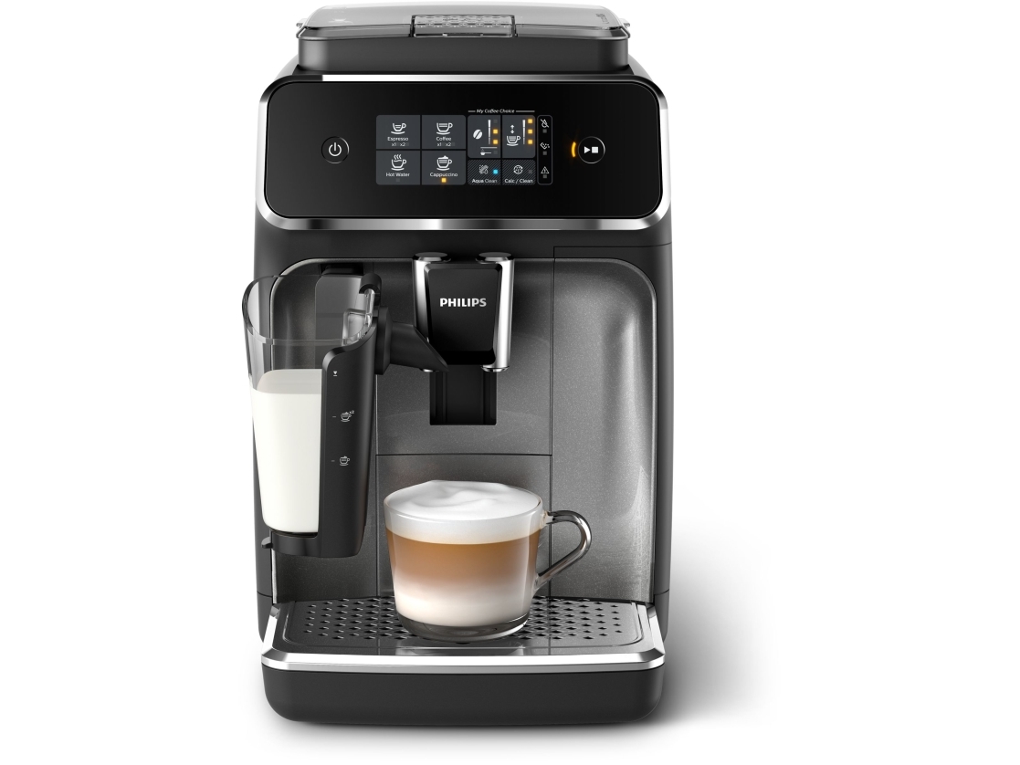 Der Philips 2200 Series EP2236/40 Kaffeevollautomat überzeugt durch sein modernes Design, eine hohe Funktionalität und ein benutzerfreundliches Milchsystem. Mit einer Leistung von 1500 Watt und einem Pumpendruck von 15 bar bietet er die Grundlage für eine Vielzahl von Kaffeespezialitäten und ein intensives Aroma.
