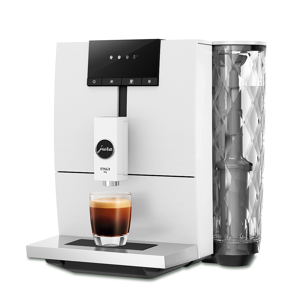 Der Jura ENA 4 besticht durch sein modernes und kompaktes Design in der Farbvariante Full Nordic White. Mit Abmessungen, die ihn als platzsparend qualifizieren, eignet er sich besonders gut für kleinere Küchen oder Büros. Die Verarbeitung des Geräts ist hochwertig, was sich in der Langlebigkeit und der Robustheit der verwendeten Materialien widerspiegelt. Kundenbewertungen loben häufig das ansprechende Design, das in verschiedenen Umgebungen gut zur Geltung kommt.