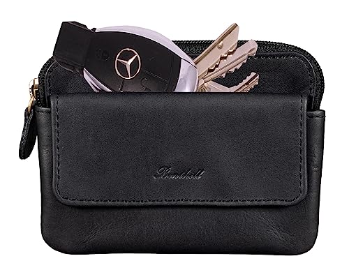 Benthill Schlüsseltasche Echt-Leder mit 2 Schlüsselringen - Schlüsseletui mit Kartenfach - Schlüsselanhänger mit KleingeldfachFarbe:Schwarz