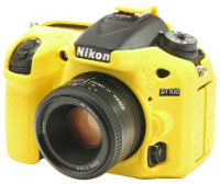 Die Silikon-Schutzhülle in Camouflage-Optik verleiht der Kamera einen eigenständigen Look und schützt vor Kratzern. Der Druckpunkt der Tasten wirkt allerdings recht schwammig, was vor allem beim Auslösen stört. Der Blitzschuh wird von der Hülle verdeckt, für die rechte Hand gibt es geriffelte Flächen, die den Halt verbessern sollen.