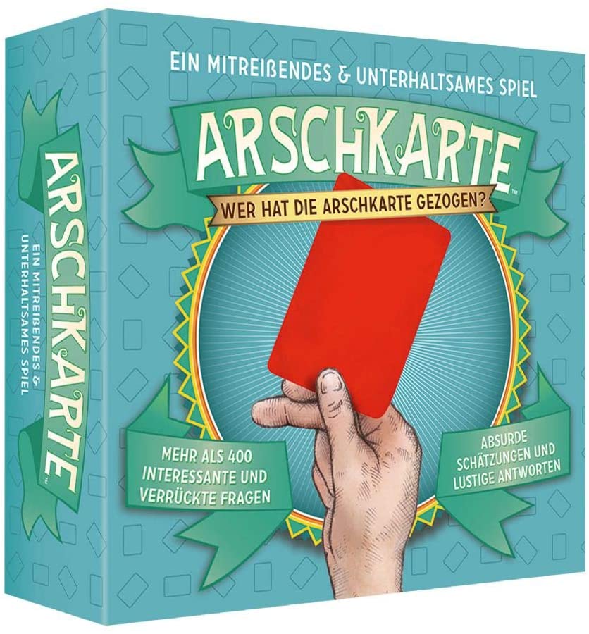 Wer hat die Arschkarte gezogen? Arschkarte ist ein mitreißendes und extrem unterhaltsames Spiel mit mehr als 400 interessanten und verrückten Fragen, die alle eines gemeinsam haben: Sie sind lustig, abgedreht und nahezu unmöglich richtig zu beantworten. Aber zum Glück muss man das ja auch gar nicht. Wer hat die Arschkarte gezogen? Punkte sammeln Sie, wenn Sie mit Ihrer Antwort der korrekten Lösung am nächsten sind und den richtigen Tipp darüber abgeben, wer die Arschkarte gezogen hat nämlich der Spieler, der mit seiner Antwort am weitesten daneben liegt. Zum Tippen übergeben Sie ihre rote Arschkarte vor Verkündung der korrekten Antwort an den Spieler, den Sie dafür halten. Toi, toi, toi. Machen Sie sich gefasst auf jede Menge absurde Schätzungen und lustige Antworten. Arschkarte ist das perfekte Mitbringsel und ein echter Stimmungsmacher für Partys, Familienfeiern oder gelungene Spieleabende.