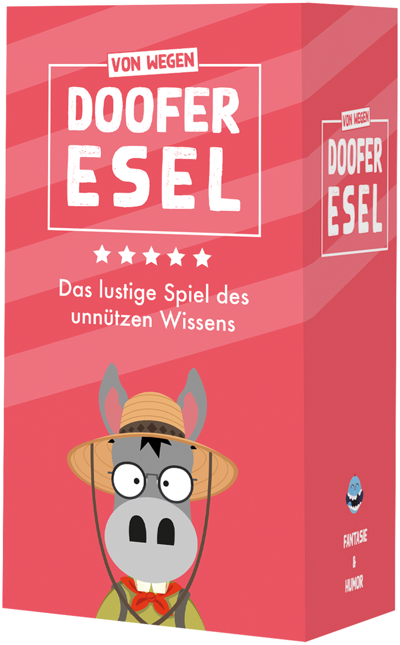 🎲 Doofer Esel ist ein lustiges und kreatives Kartenspiel bei dem dein unnützes Wissen und ein guter Bluff gefragt sind. Ideal für unterhaltsame Spieleabende mit Freunden oder der Familie! 🎭 Erfindet im Team falsche Antwortmöglichkeiten auf skurrile Fragen und erzeugt möglichst gute Bluffs, damit euch das andere Team glaubt 🤩 Doofer Esel ist ein wunderbares Spiel für alle Generationen. Lustig, aber nicht vulgär. Perfekt für Familien, Spieleabende mit Freunden und auch als lustiges Geschenk 🎯 Spielverlauf: 1️⃣ Teilt euch in zwei Teams. Das erste Team zieht eine Frage. 2️⃣ Erfindet zwei weitere Antwortmöglichkeiten und schreibt alle Antworten auf den Block. 3️⃣ Das andere Team setzt Chips auf die Antworten. 4️⃣ Chips auf falschen Antworten scheiden aus. Wer zuerst keine Chips mehr hat, verliert das Spiel 🥳 Für 2-10 Spieler und 15-20 Minuten perfekte Unterhaltung pro Spielrunde 🇩🇪 Designed in Deutschland und produziert in Europa unter Verwendung umweltschonender Rohstoffe. Wir spenden 1% unserer Gewinne für einen guten Zweck