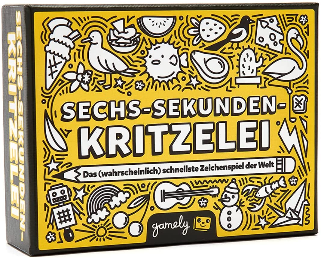 Das Spiel "Gamely Sechs-Sekunden-Kritzelei: Das fieberhaft-Flotte" erfreut die Kunden mit seinem kompakten Format, einfachen Regeln und dem Spaßfaktor beim schnellen Zeichnen und Erraten von Begriffen.