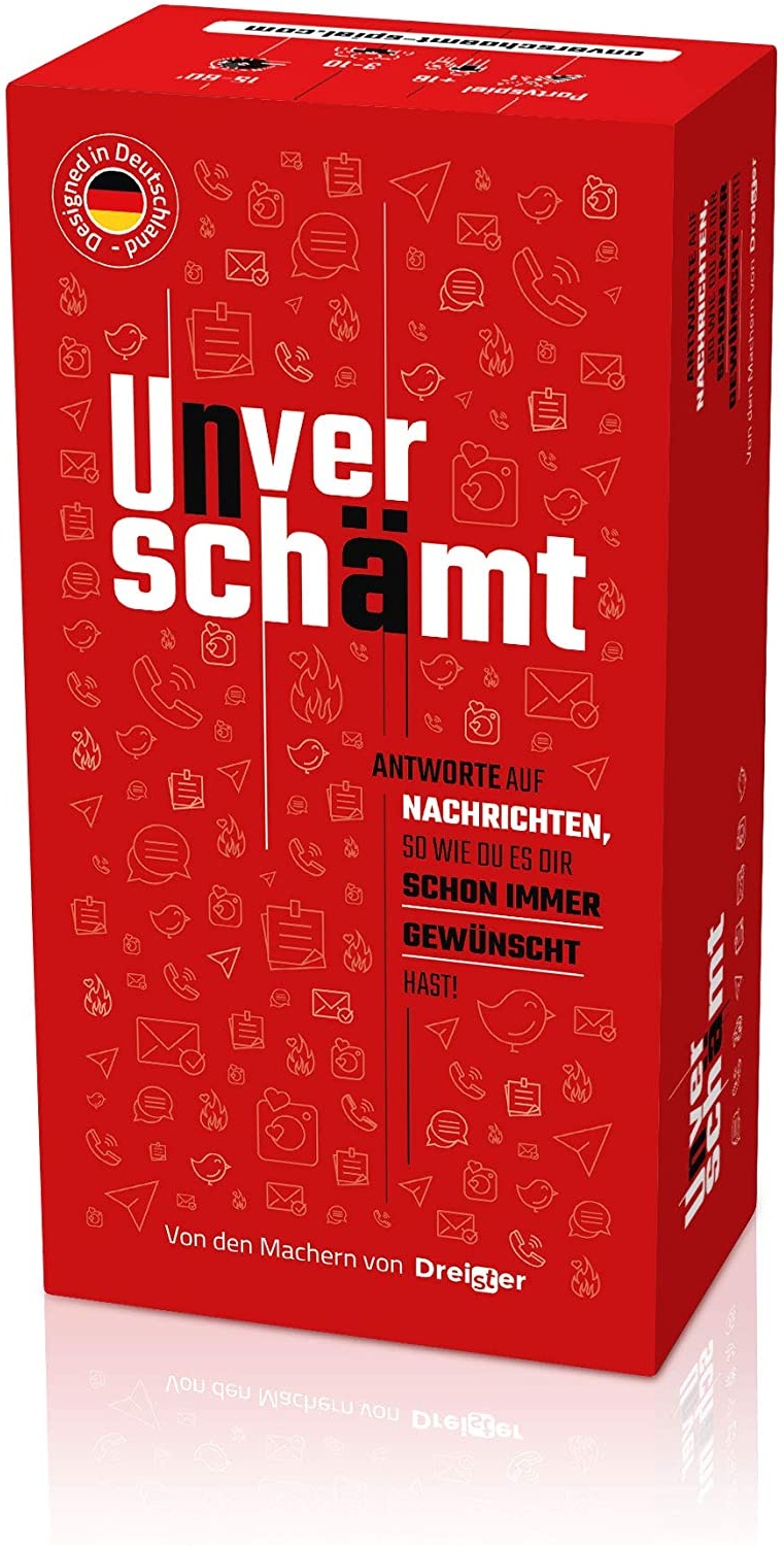 😍 DAS ORIGINAL: Das lustige Partyspiel mit 480 Karten, bestehend aus verrückten Nachrichten und unverschämten Antwortmöglichkeiten, sorgt für einen witzigen und feuchtfröhlichen Spieleabend mit deinen Freunden 🥳 FÜR JEDEN ANLASS: Perfekt für jede Party, JGA, WG-Feier, Silvester, Abschlussfeier, Festival oder als Geschenk für Frauen oder Männer, Geburtstagsgeschenk, Weihnachtsgeschenk ⚡️ GENIAL EINFACH: Antworte auf Nachrichten, so wie du es dir schon immer gewünscht hast! Dieses lustige Kartenspiel sorgt für skurrile Situationen und reichlich Gespächsstoff, großes Gelächter und eine tolle Gruppendynamik 🌶 SPIELVERLAUF: Für Spaß zu dritt und mehr, mit lustigen Nachrichten die aus dem Leben gegriffen sind, für 15-60 Minuten beste Unterhaltung, ab 16 Jahre 🇩🇪 ♻ LOKAL: Designed in Deutschland und hergestellt unter Verwendung von umweltfreundlichen Papier, 1% der Gewinne spenden wir für einen guten Zweck