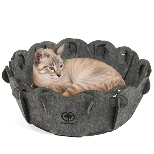 • Das runde Katzenbett "Flower" von CanadianCat Company ist ein gemütlicher Schlafplatz für deine Katze, hergestellt aus strapazierfähigem Filzmaterial für Langlebigkeit