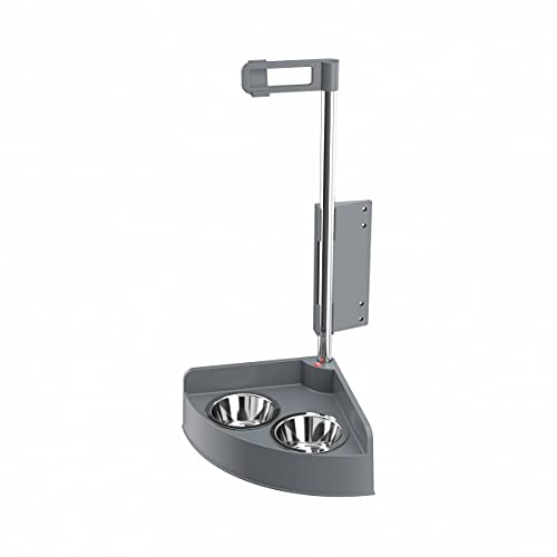 • Die Futterstation passt an jede Drehtür von Küchenschränken ab 40 cm Breite und verschwindet unsichtbar im Schrank, zur Reinigung oder Befüllung kann der Napf problemlos herausgenommen werden.