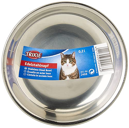 Der TRIXIE Katzennapf aus Edelstahl erhält gemischte Bewertungen von Kunden. Einige sind zufrieden mit der Qualität und Funktionalität, während andere Probleme mit dem hartnäckigen Aufkleber und dem Fehlen einer Gummierung an der Unterseite haben.