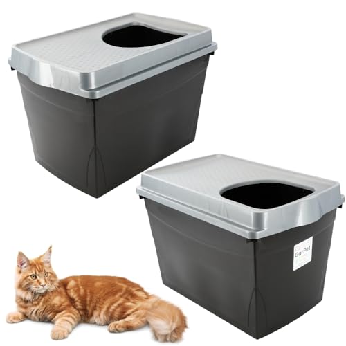 2X Hop In Katzenklo Oben einstieg Katzentoilette geschlossen Top Entry Jump-In XXL Haubentoilette Groß Katzen Klo schwarz Doppelpack Sparpaket