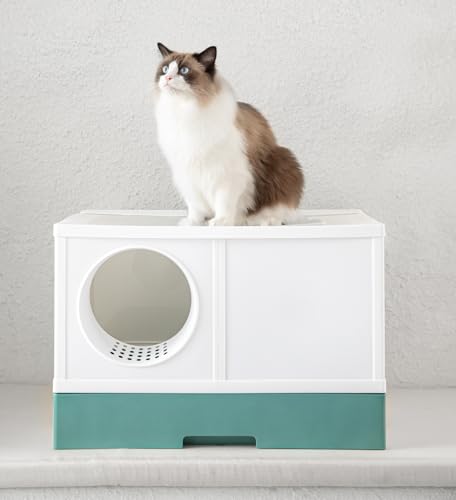TIGO-X Katzenklo XXL Katzentoilette für große Katzen. Große geschlossene Katzentoilette mit Luftfilter. Leicht zu reinigen,ausziehbare Schublade. Nach Wunsch zusammensetzen (weiß)