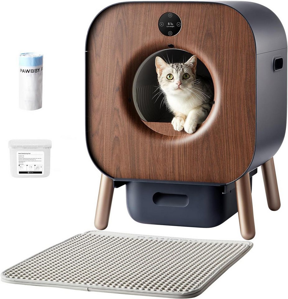 PAWBBY Katzentoilette P1 Ultra SelbstreinigendAnti-Klemm/Pflanzendesodorierendes, TÜV-Zertifizierung, App-Steuerung, Extra Groß für Mehrere Katzen, Braun