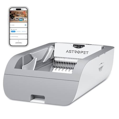 AstroPet offene selbstreinigende KatzentoiletteAPP Steuerung, Infrarot-Sensorschutz, Katzenklo mit großem Fassungsvermögen XXXL für mehrere Katzen (Grau)