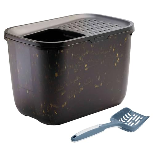 PETGARD Sparpack Katzentoilette HOP IN Schwarz-Marmor-Gold + XXL Streuschaufelfür Stehpinkler, mit extra hoher Rand und praktischem Deckelöffnungssystem