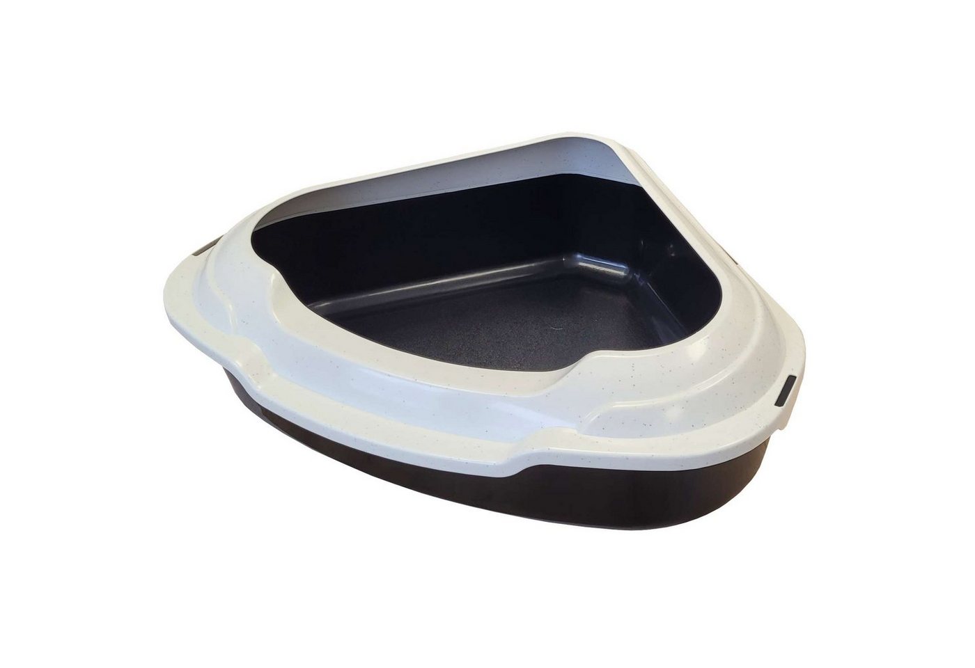 PETGARD Katzentoilette Ecktoilette XXL SchalentoiletteMEMPHIS schwarz-weiß mit Rand, abnehmbarer Rand und integrierte Befestigungsclips