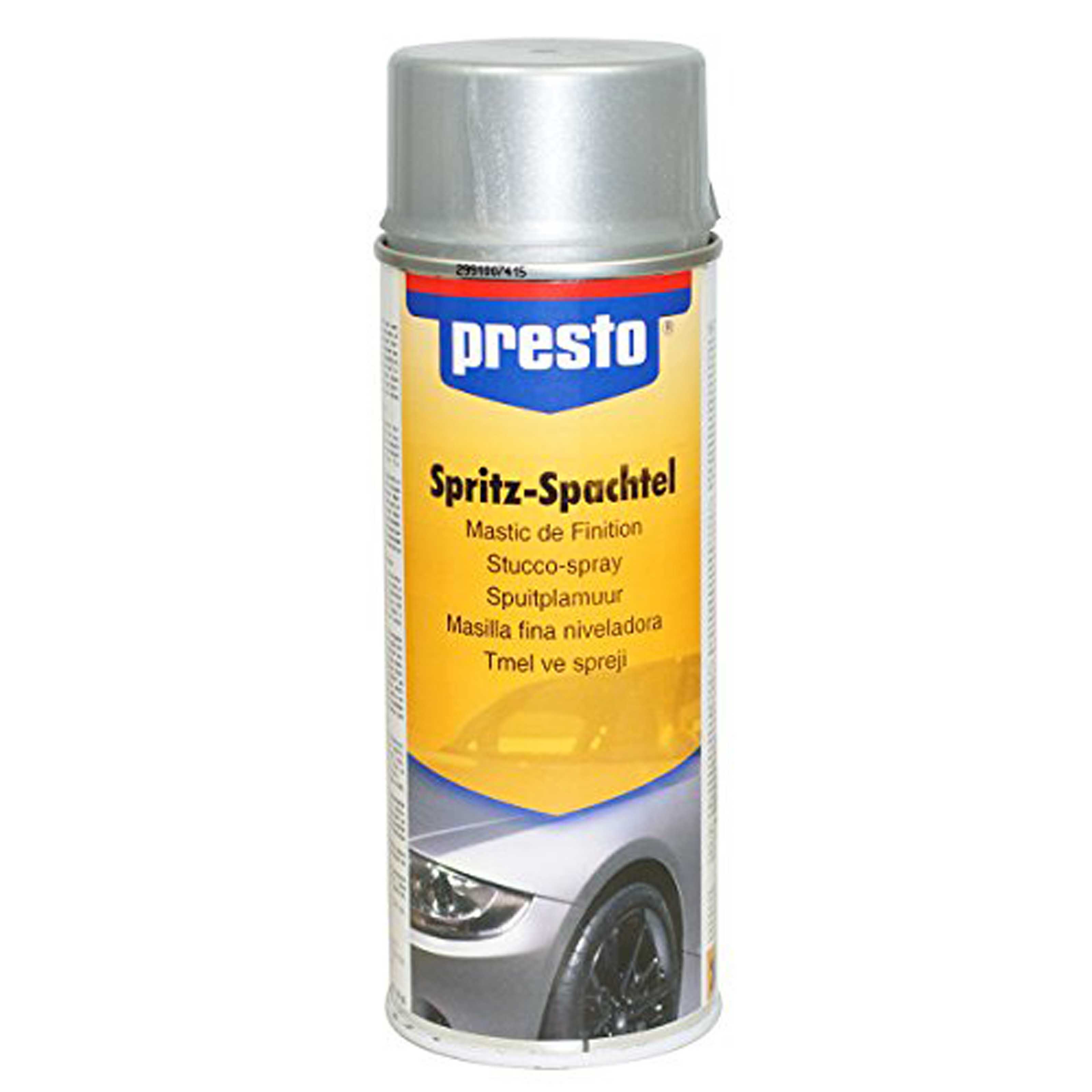 Der Presto Spritzspachtel 400ml bietet eine einfache Anwendung und eine gute Konsistenz, die das Auftragen mit einer Spritzpistole erleichtert. Er deckt Unebenheiten gut ab, trocknet schnell und ist leicht schleifbar. Allerdings gibt es Probleme mit der Sprühdüse und es sind mehrere Schichten nötig, um die besten Ergebnisse zu erzielen.