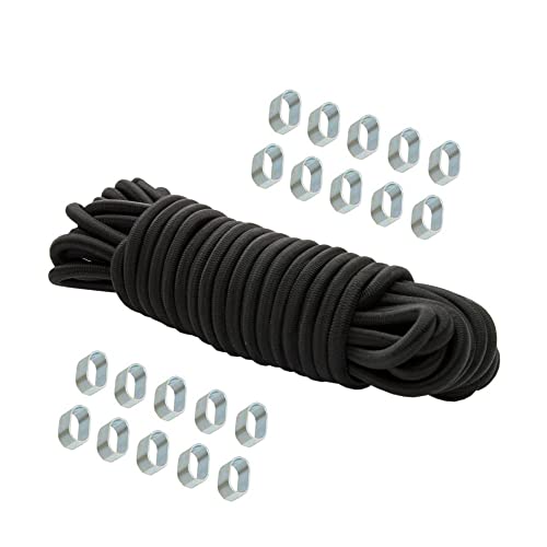 Dreamprint Expanderseil 8mm Schwarz 20m Gummiseil Gummischnur Spannseil Planenseil Gummileine elastisches Seil mit 20x Würgeklemmen