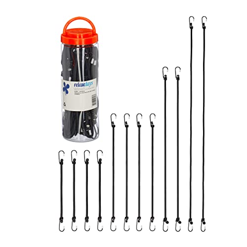 Relaxdays Spanngummi mit Haken12er Set, Fahrrad Gummispanner Gepäckträger, 4 Größen, Universal Gepäckspanner, schwarz