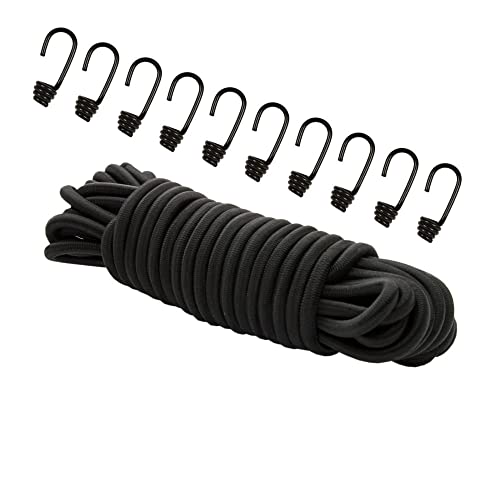Dreamprint Expanderseil 8mm Schwarz 20m Gummiseil Gummischnur Spannseil Planenseil Gummileine elastisches Seil mit 10 Spiralhaken ø 8 mm