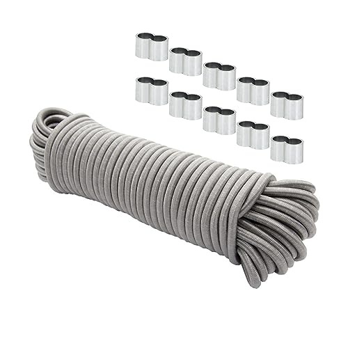 Dreamprint Expanderseil 10 m Grau 10 mm Gummiseil Gummischnur Spannseil Planenseil Gummileine elastisches Seil mit 10x Würgeklemmen