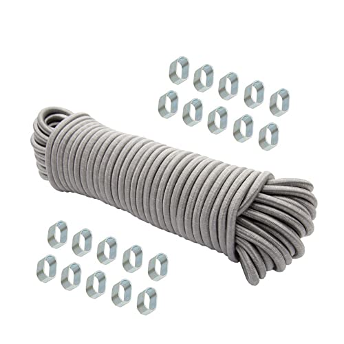 Dreamprint Expanderseil 10 m Grau 6 mm Gummiseil Gummischnur Spannseil Planenseil Gummileine elastisches Seil mit 20x Würgeklemmen