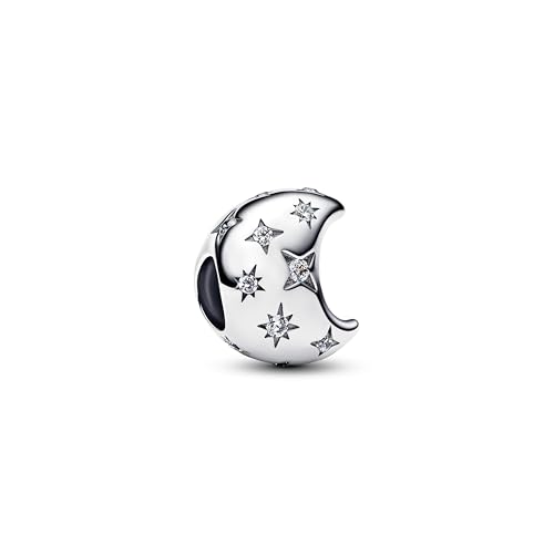 PANDORA Moments Mondsichel Charm Sterling-Silber mit Zirkonia und Gravur „THE SKY IS THE LIMIT“, kompatibel mit Moments, 794254C01