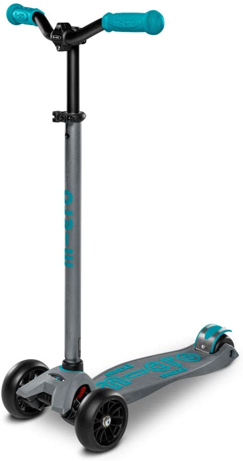 | Name | Micro Kickboard – Maxi Deluxe Pro Kick Scooter – Leichtgängiger, 3 Räder, Lean-to-Steer Scooter mit breiten, stabilen Rädern und Chopper-Style, höhenverstellbarer Lenker von 5-12 Jahren (Grau/Aqua) |