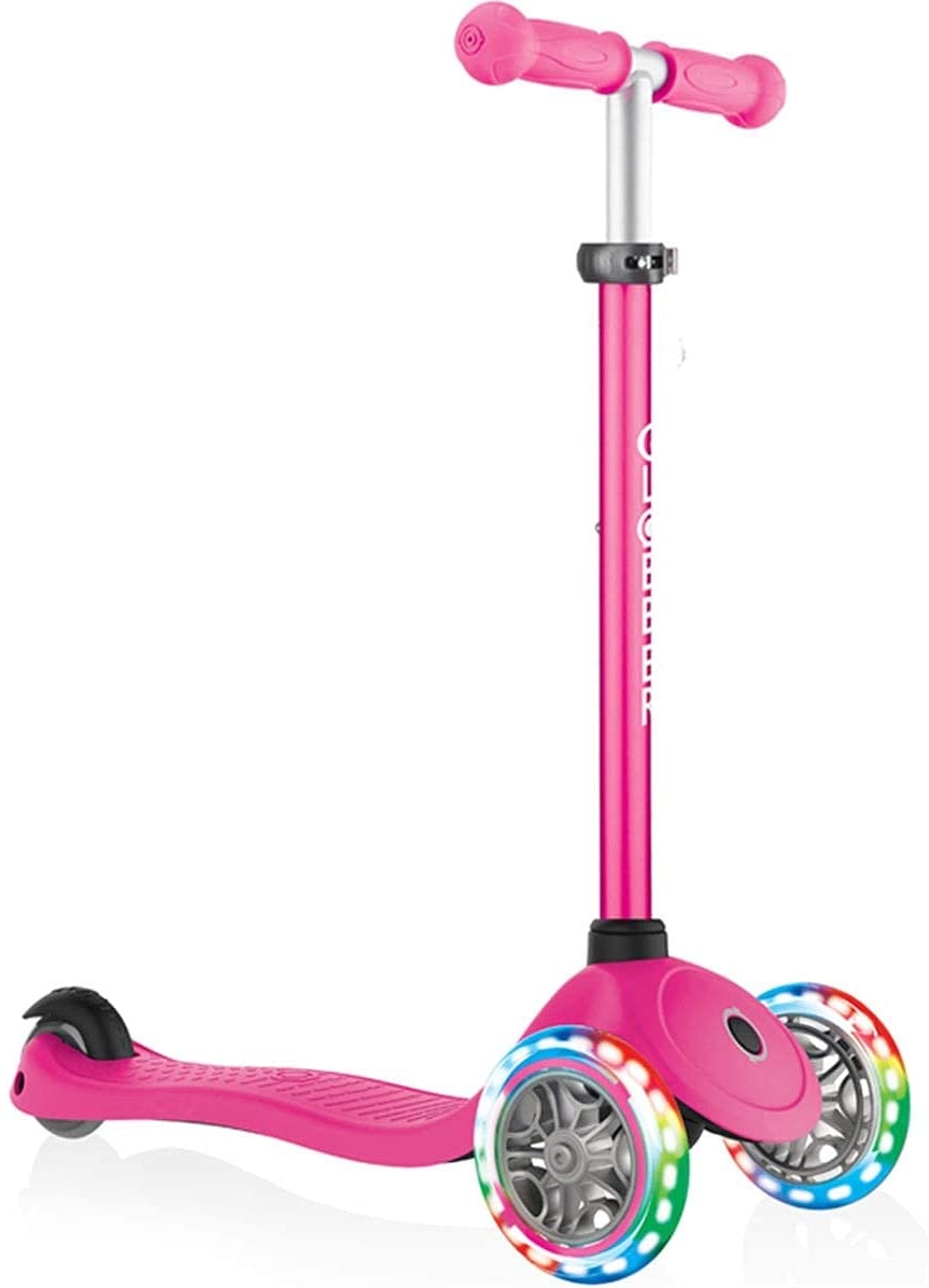 Der GLOBBER Primo Lights ist ein stabiler und hochwertiger Roller, der sich durch seine weichen, leuchtenden Rollen auszeichnet. Er bietet eine einstellbare Lenkerhöhe und ein rutschfestes Trittbrett, was ihn für Kinder unterschiedlichen Alters geeignet macht. Die Lenkung erfolgt durch Gewichtsverlagerung, was für einige Kinder anfangs ungewohnt sein kann.