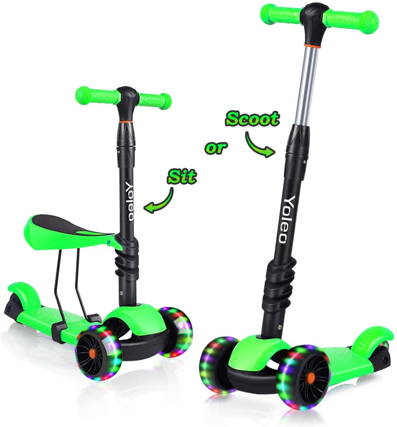 | Name | YOLEO 3-in-1 Kinderscooter Kinder Roller mit Abnehmbarem Sitz, LED große Räder, Höheverstellbare Lenker für Kleinkinder Jungen Mädchen ab 2 Jahre (Grün) |