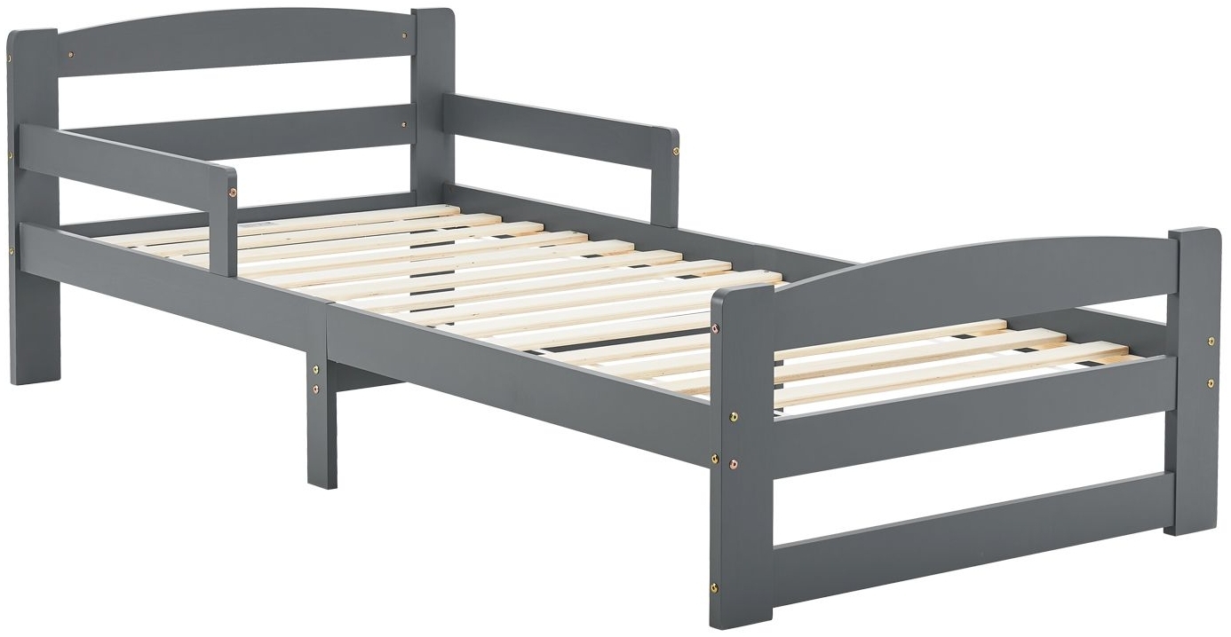| Name | Juskys Jugendbett Arona 90x200 cm mit Lattenrost - Bettgestell aus Massivholz in Grau - Einzelbett mit Rausfallschutz - Stauraum unter dem Bett |