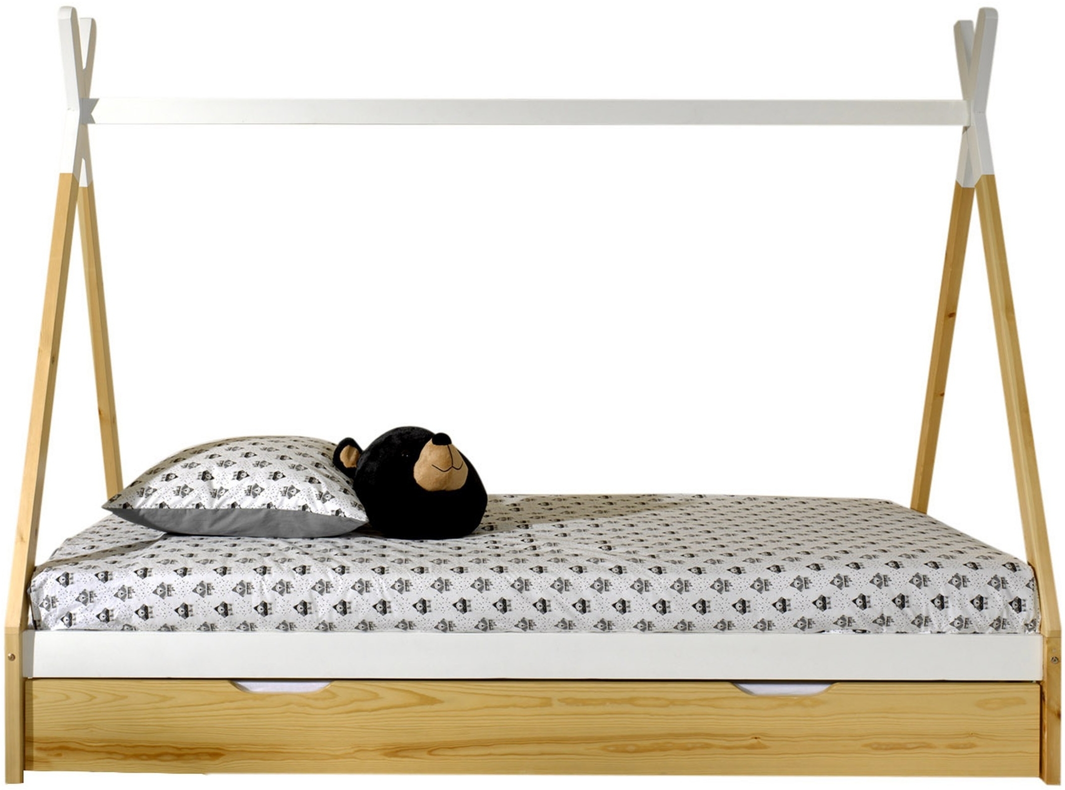 | Name | Tipi Zelt Bett Liegefläche, inkl. Rolllattenrost und Bettschublade, Kiefer massiv natur/weiß, 90x200 cm |