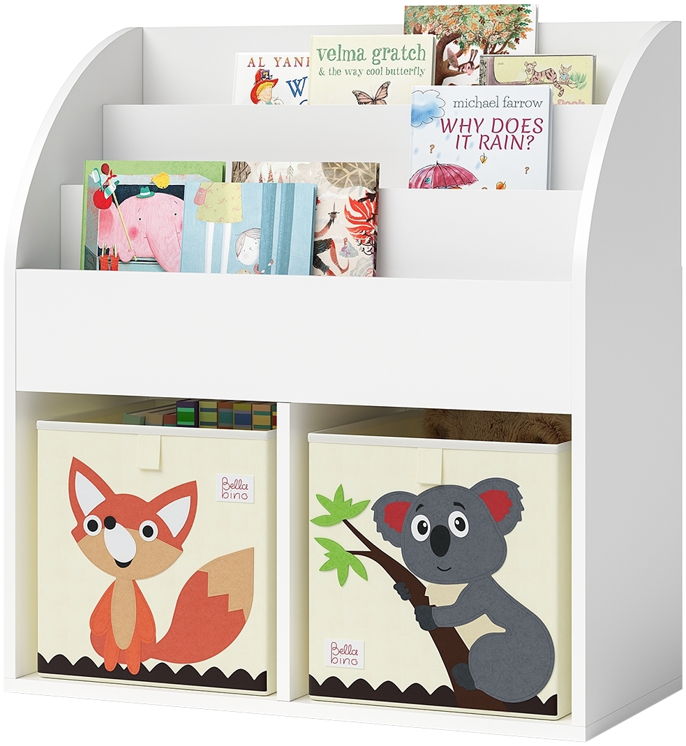 | Name | Bellabino 'Koro' Kinderbücherregal, weiß, Kinderregal mit 3 Fächern für Bücher und 2 Fächern für Boxen, inkl. 2 Faltboxen (Fuchs/Koala) |
