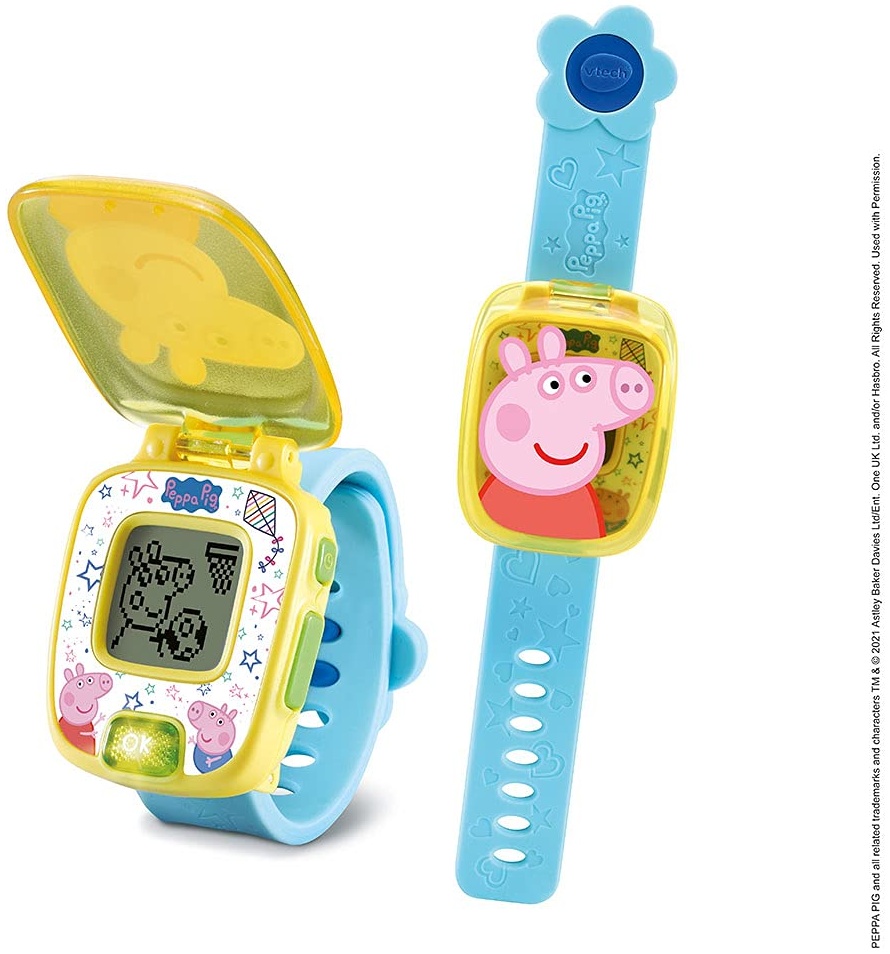 | Beschreibung | Version: Französisch. Alter: Eine sprechende Multifunktions-Uhr mit animiertem Display zum Spielen und Lernen mit Peppa Wig, für Kinder von 3 bis 6 Jahren. Funktionen: 1 animiertes Display, doppelte Zeitanzeige analog oder digital / Alarm / Wecker und Stoppuhr / Sanduhr. Lernen: 4 Spiele zum Zählen lernen und Formen entdecken und mit Peppa und ihrer Familie entdecken. Im Lieferumfang enthalten: 8 Zifferblätter zum Personalisieren Ihrer Uhr / die echten Stimme der Charaktere der Serie Peppa Wig, Hersteller: V Tech |