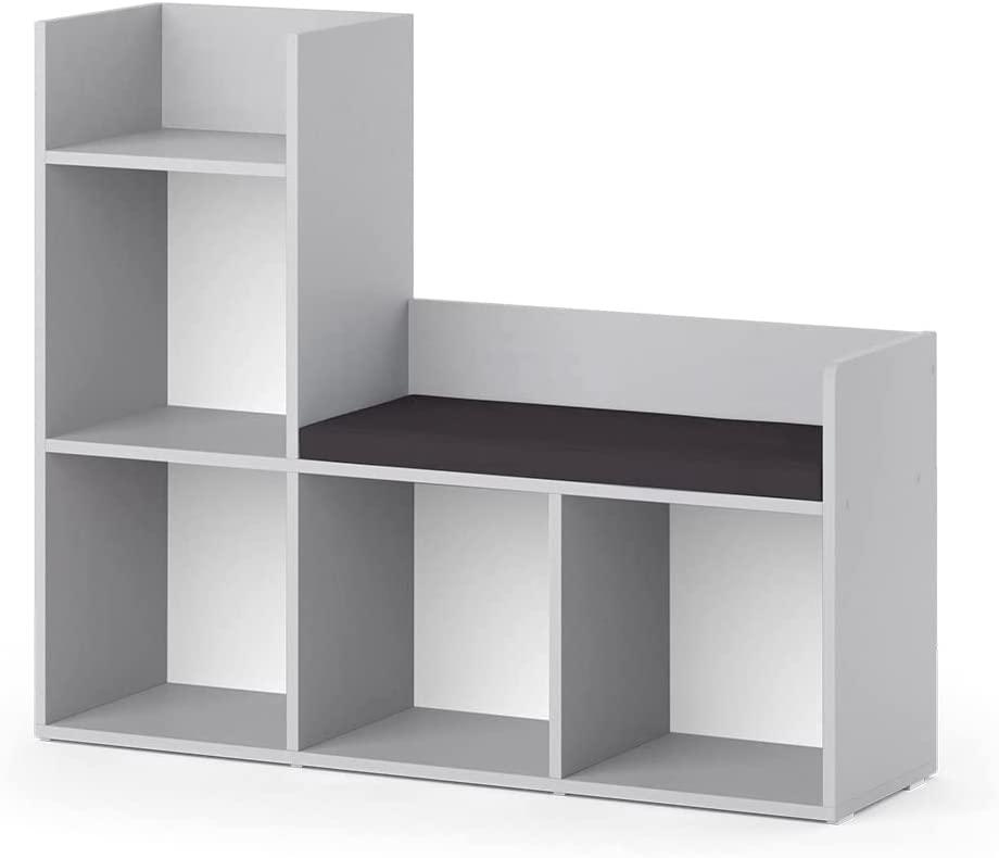 Das Kinderregal Luigi ist die perfekte Ergänzung für jedes Kinderzimmer. Mit seinen vier offenen Regalen bietet es viel Platz für Bücher und Spielzeug, während die integrierte Sitzbank eine gemütliche und praktische Sitzgelegenheit bietet. Der gepolsterte Sitz sorgt für zusätzlichen Komfort beim Lesen oder Spielen. Das Regal ist Teil der Luigi-Möbelserie, die speziell für Kinderzimmer entworfen wurde und sich wunderbar mit anderen Artikeln der Kollektion kombinieren lässt. Mit diesem Spielzeugregal wird das Aufräumen zum Kinderspiel und das Kinderzimmer bleibt immer ordentlich und aufgeräumt. Schaffen Sie eine warme und gemütliche Atmosphäre im Kinderzimmer mit Luigi! --- **Technische Details:** **Farbe:** Grau **Abmessungen:** 30 x 107 x 53 cm (BxHxT) **Material:** Spanplatte, 16 mm **Oberfläche:** Melaminharzbeschichtung **Artikelgewicht inkl. Verpackung:** 22 kg. **Artikelgewicht:** 21.01 kg. --- LIEFERUMFANG: Kinderregal, Montageanleitung, Montagematerial .