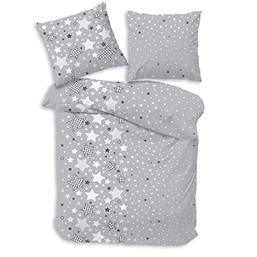 MTOnlinehandel Biber Bettwäsche 135x200 Sterne-MotivTeenager-Bettwäsche, Kinder-Bettwäsche für Mädchen und Jungen, Kissenbezug 80x80 + Bettbezug 135x200 cm - 100% Baumwolle Winter warm