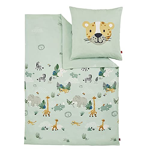 Bietet eine kindgerechte Tierwelt auf 100% Baumwolle für süße Träume und einfachen Bezugwechsel.